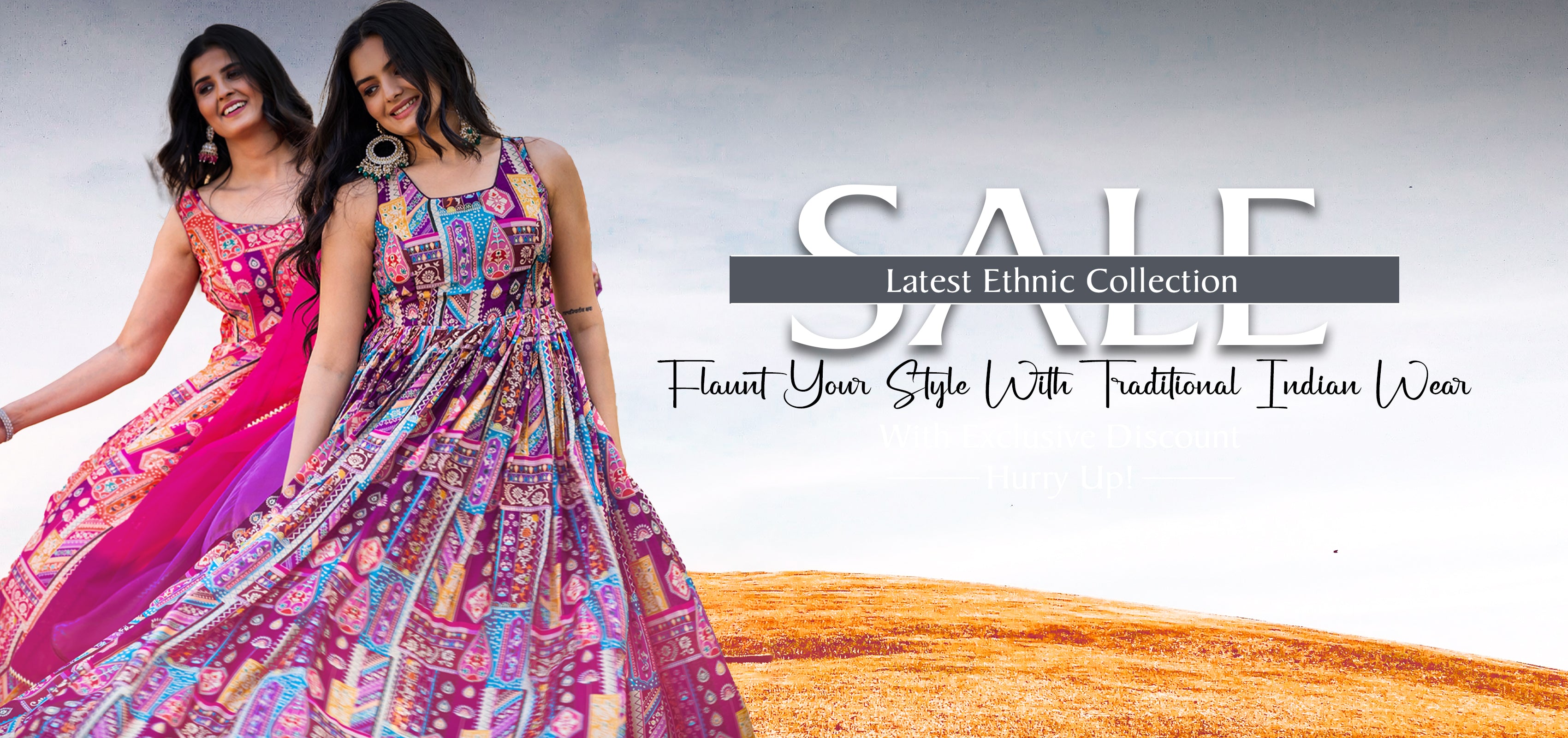 WOMEN'S FLORAL FLARED GOWN WITH MATCHING DUPATTA