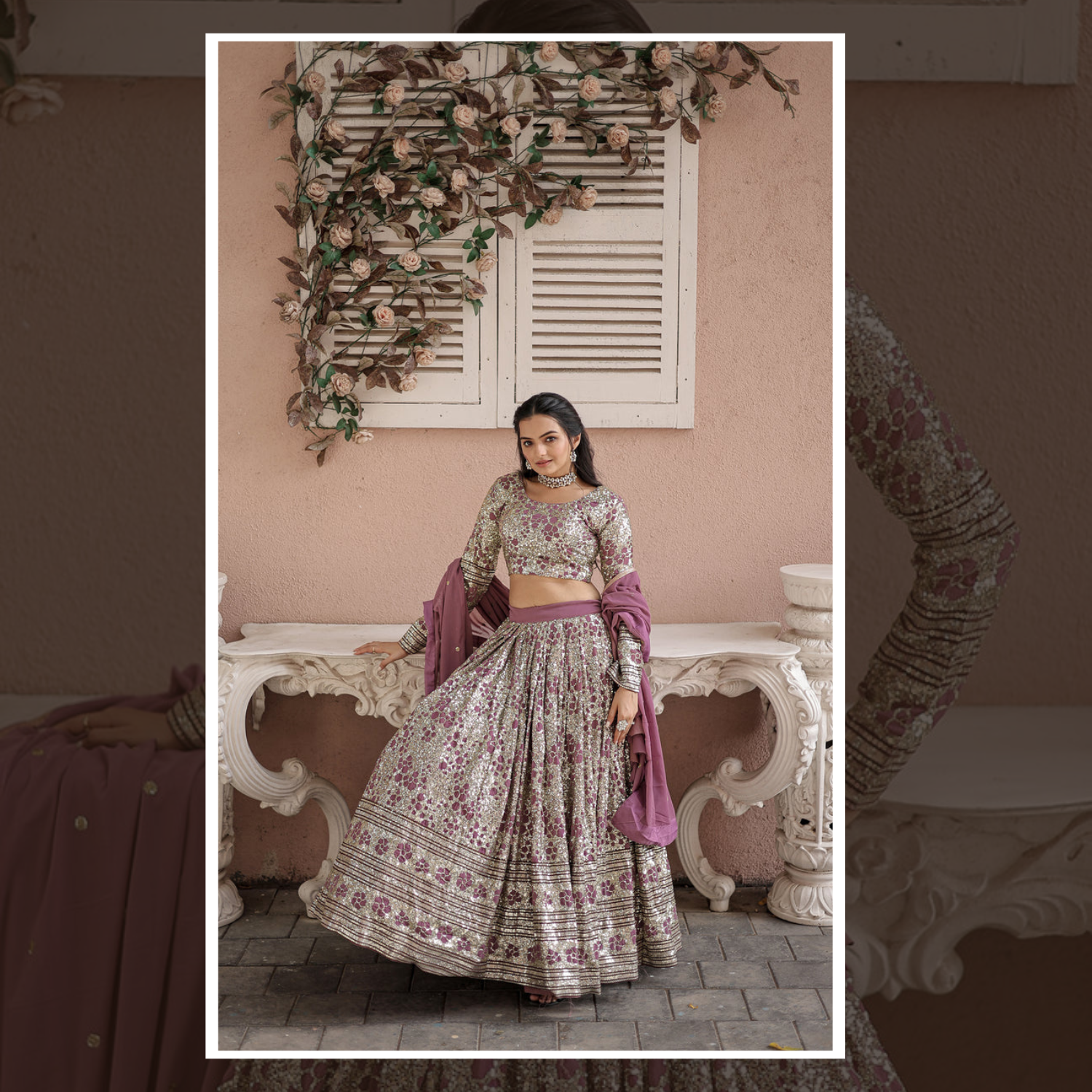 EXQUISITE LEHENGA CHOLI ADORNED WITH METICULOUS SEQUIN EMBROIDERY