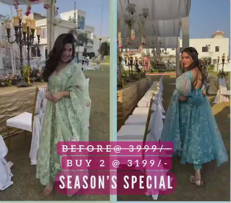 COMBO OFFER - FLARED EMBROIDERED SUIT SET WITH DUPATTA AND PANT