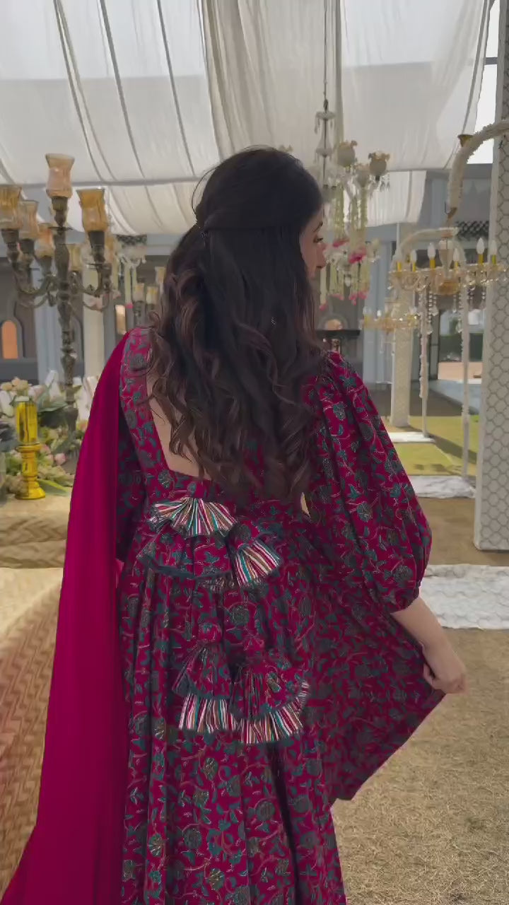 PARTY WEAR FLARED PRINTED KURTA SET WITH DUPATTA AND PANT