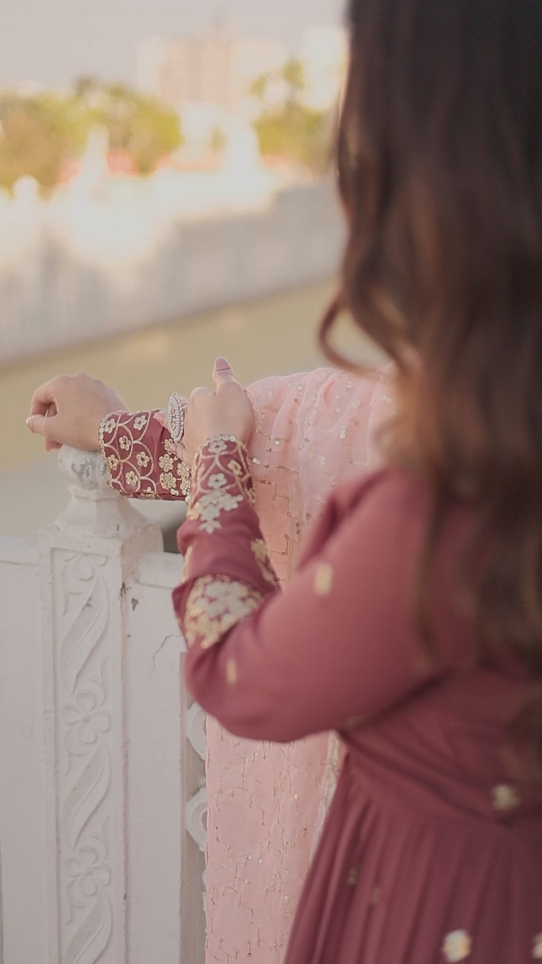 EMBROIDERED GEORGETTE ABAYA STYLE SUIT IN MAROON