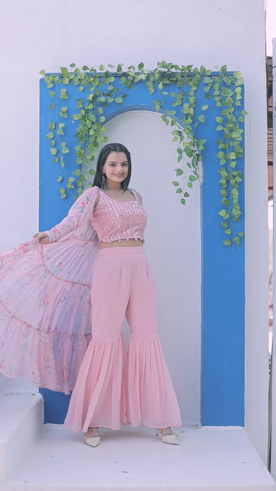 OCCASION WEAR 3 PIECE SHARARA SET WITH PRINTED SHRUG (JACKET) & EMBROIDERED CHOLI