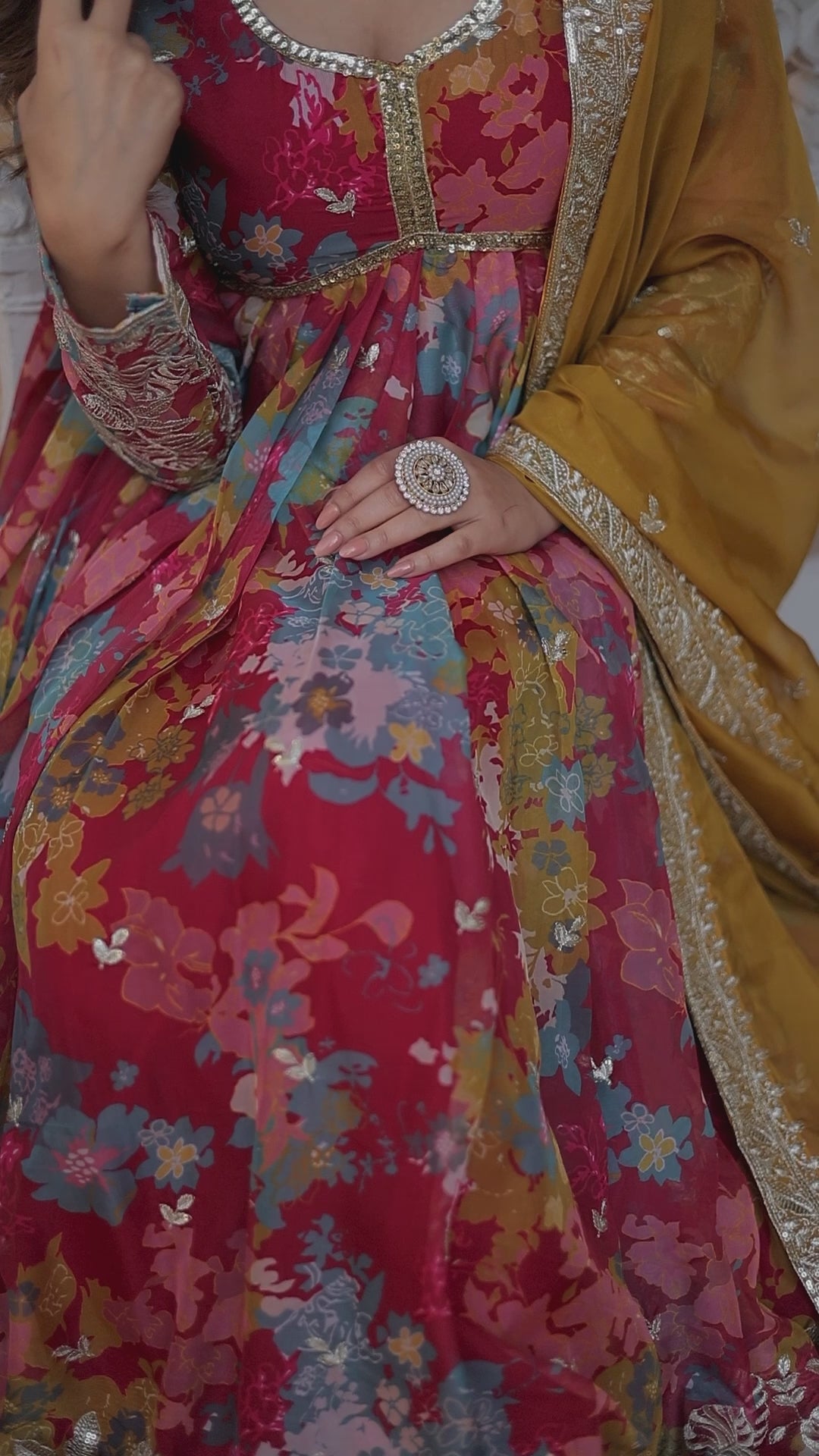 Get dressed up for all occasion glorious Gown with contrast Dupatta.