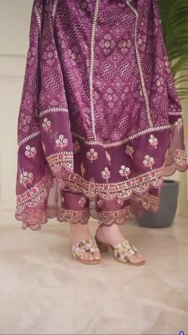 Featuring beautiful Heavy Suit Set which is beautifully decorated with intricate hand embroidery, Zari weaving and prints. It is paired with matching pants and lace dupatta