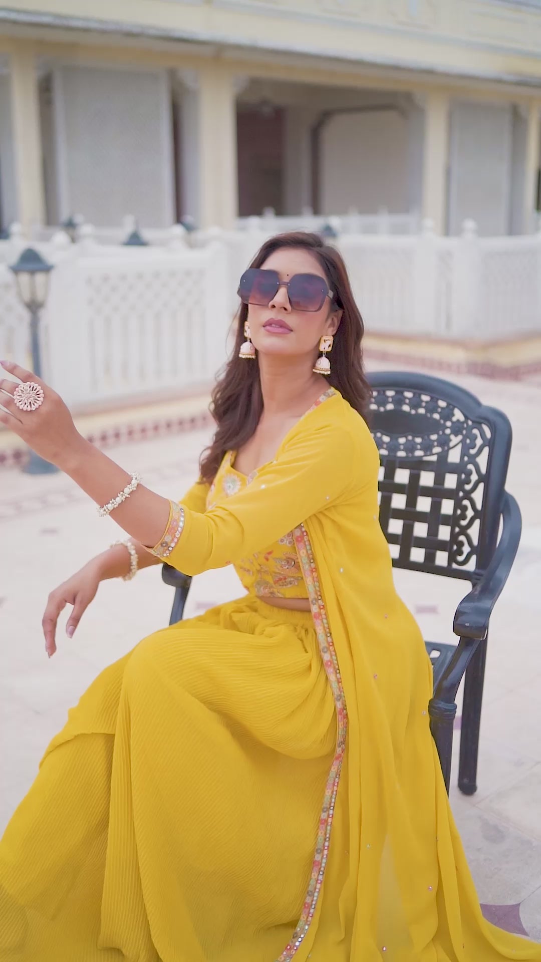 TRENDING 3 PIECE PARTY WEAR PALAZZO SET WITH EMBROIDERED CHOLI & SHRUG (JACKET)
